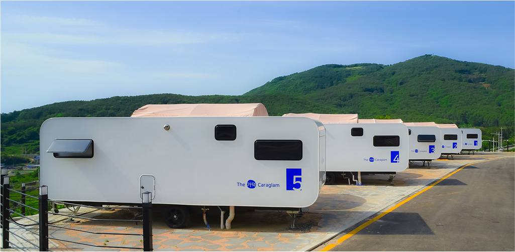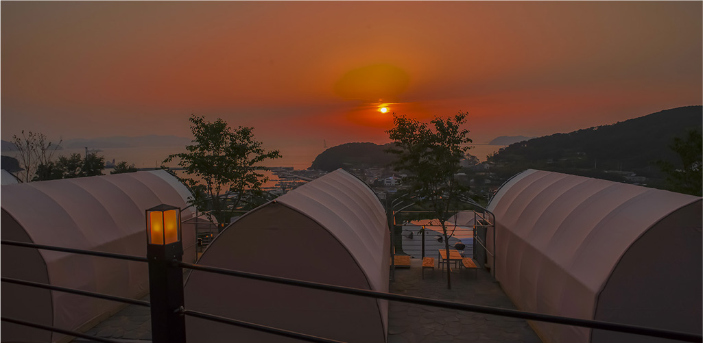 시원하게 펼쳐진 바다. 아름다운 노을을 바라보며 즐길 수 있는 카라반 & 글램핑